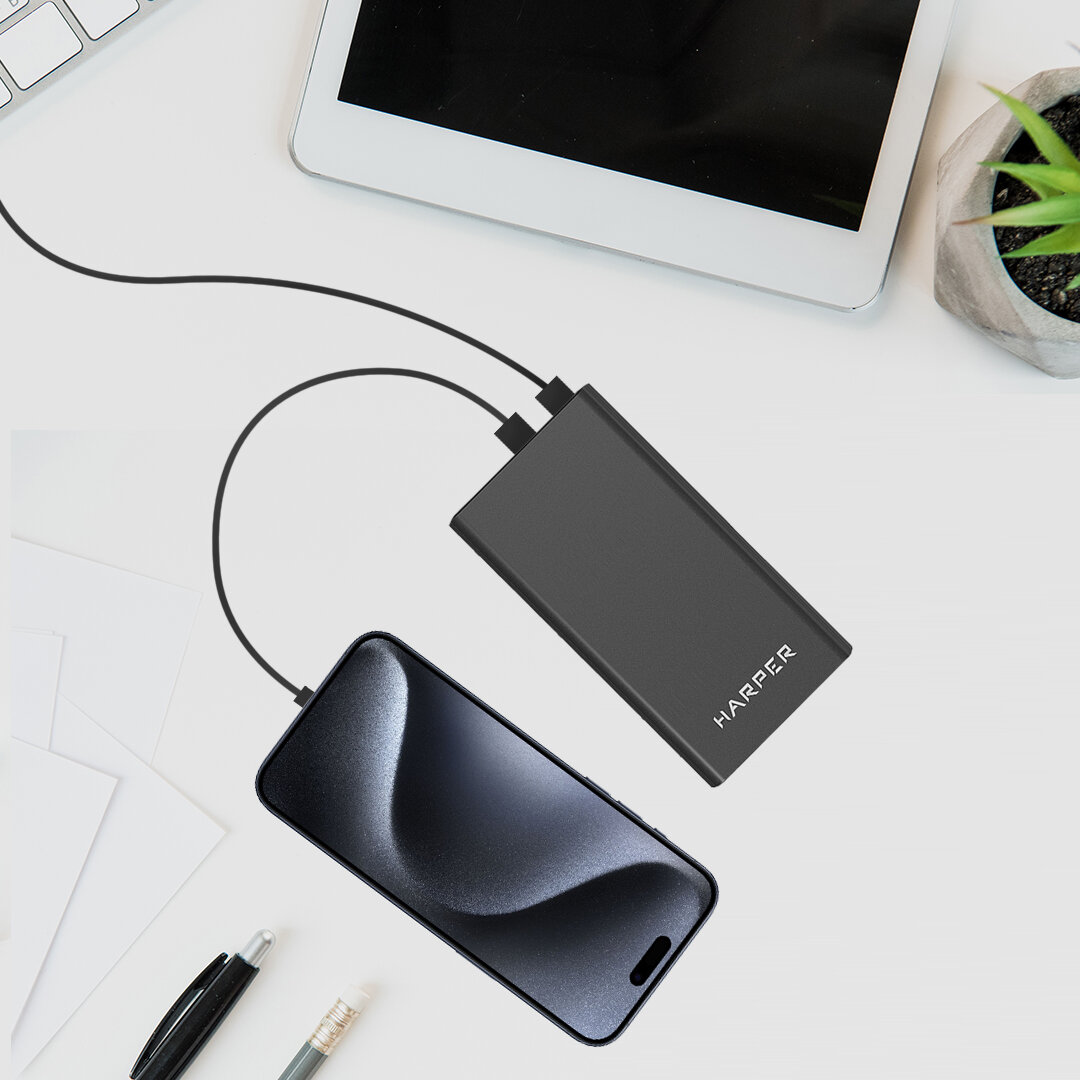 Повербанк / Внешний аккумулятор для телефона 10 000 мАч / Type-C, USB х 2, Harper PB-10031 информация: