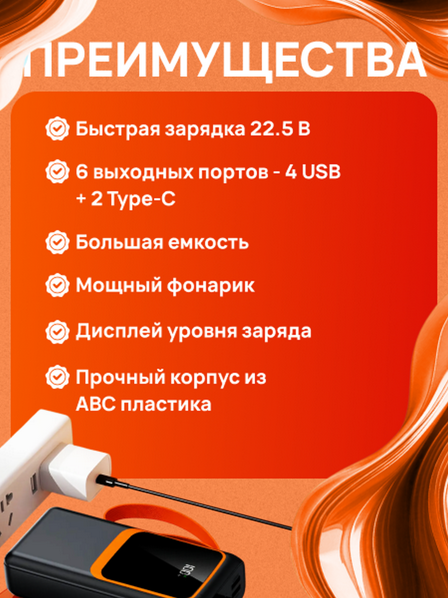 Отзывы на Портативный аккумулятор Hoco J221, Power Bank, 80000 mAh, с фонариком, черный