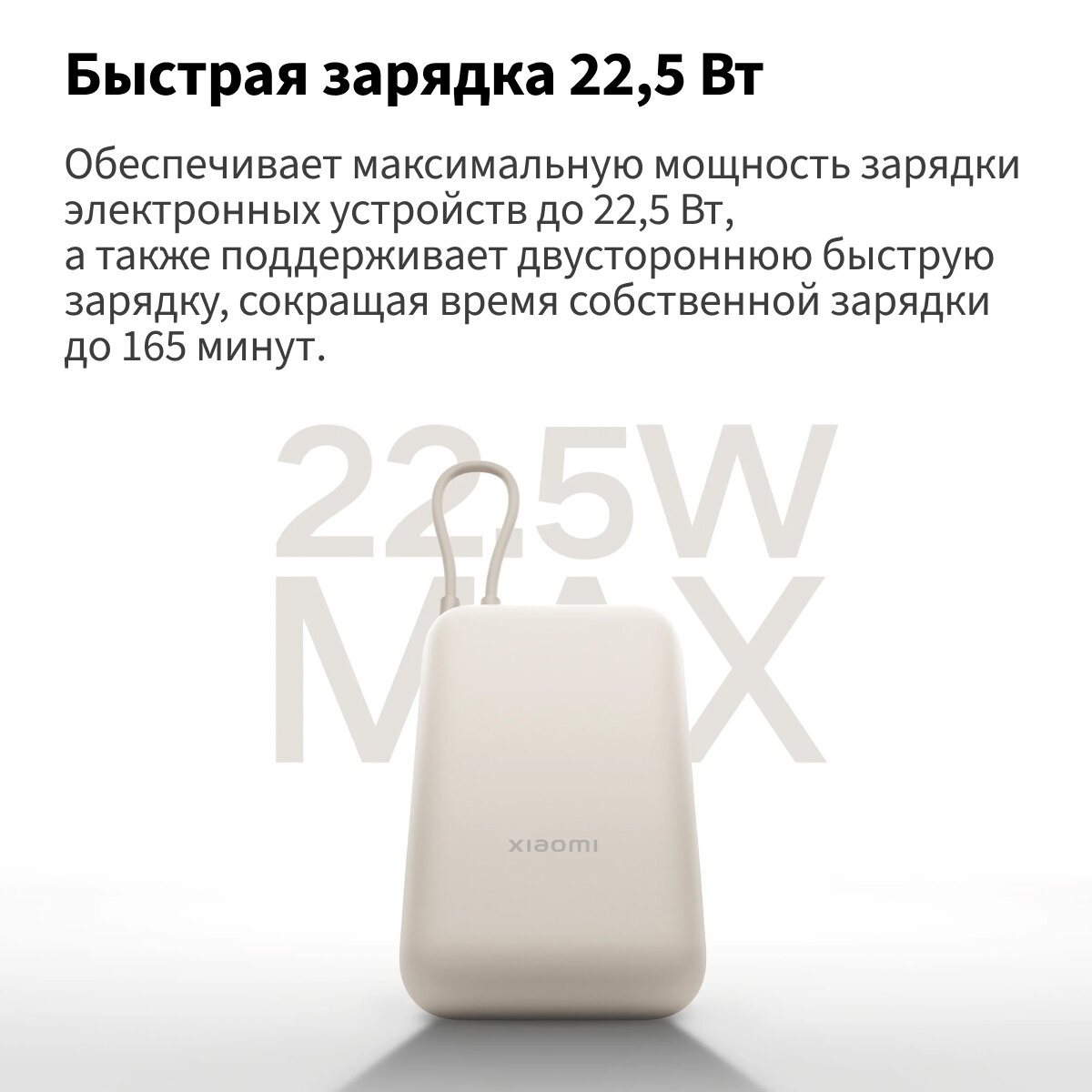 Внешний портативный аккумулятор Xiaomi Power Bank 10000mAh (Integrated Cable) Tan (BHR9072GL), песочный информация: