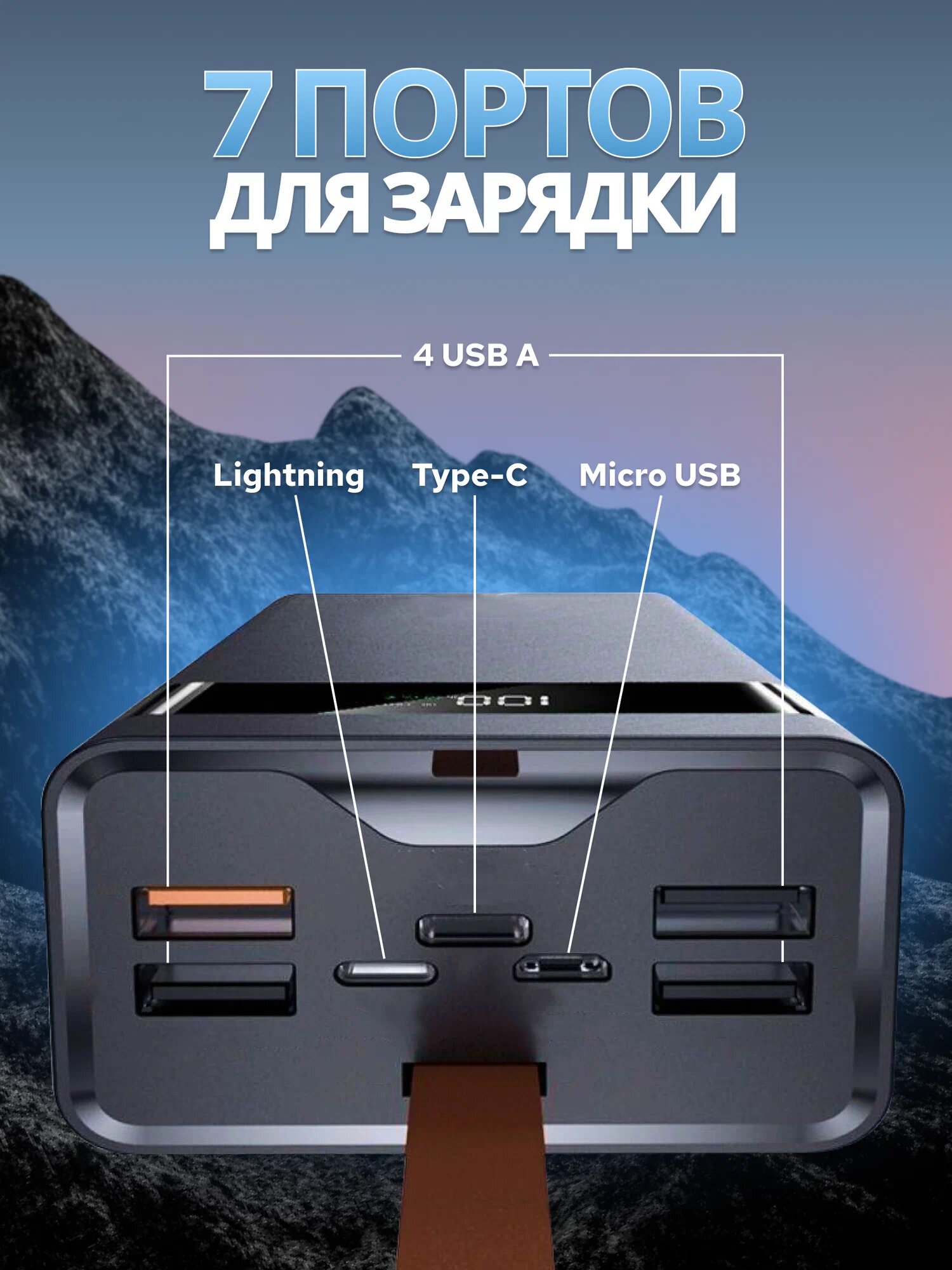 10 цен на Портативный внешний аккумулятор 50000 mAh POWER BANK X-102, 7 портов для зарядки, 3 встроенных кабеля, Черный
