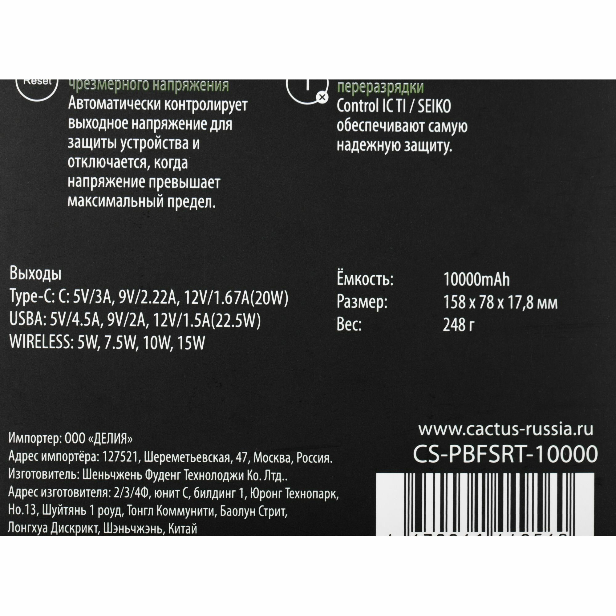 Мобильный аккумулятор Cactus CS-PBFSRT-10000 10000mAh 3A 1xUSB беспров. зар. черный информация: