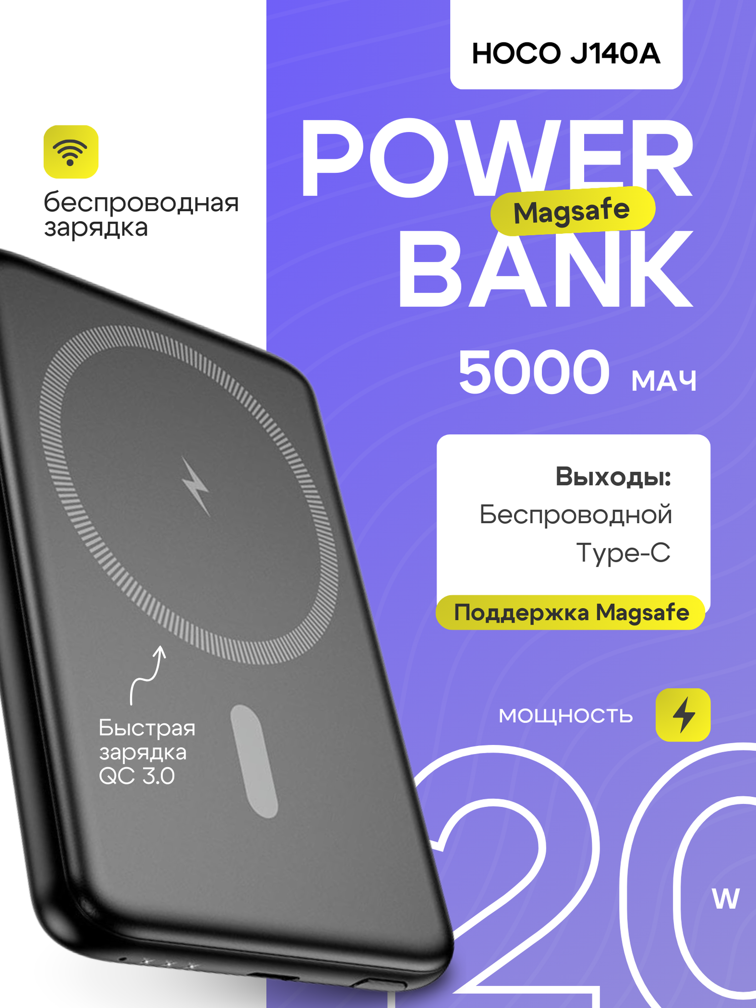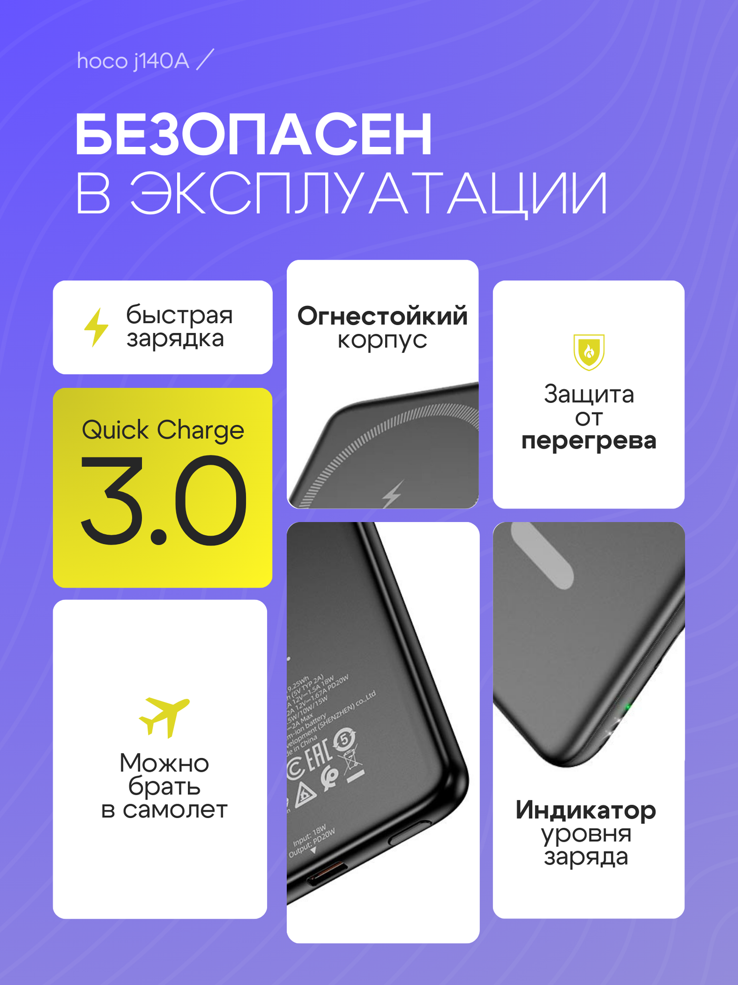 Внешний аккумулятор Hoco J140 5000mAh, магнитный, быстрая зарядка информация: