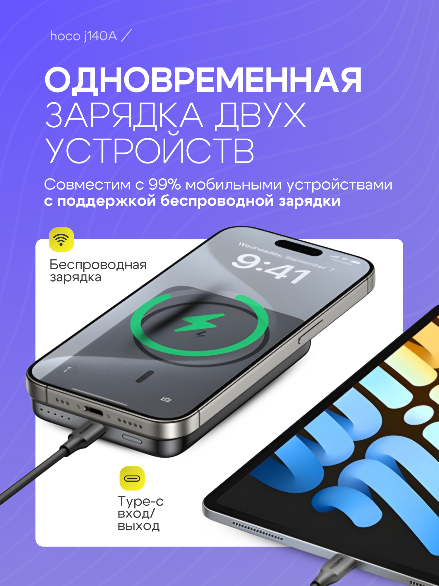 Отзывы на Внешний аккумулятор Hoco J140 5000mAh, магнитный, быстрая зарядка