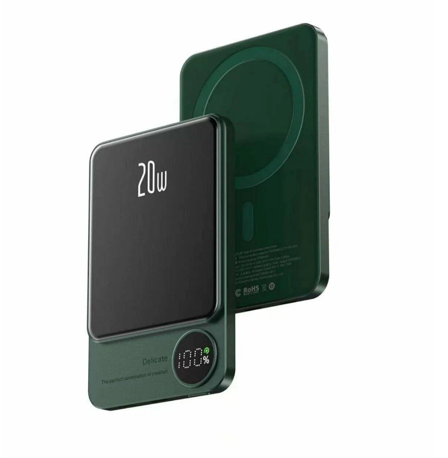 Беспроводной повербанк MagSafe для iPhone 10000 mAh 20 Ватт, магнитный аккумулятор / зеленый информация:
