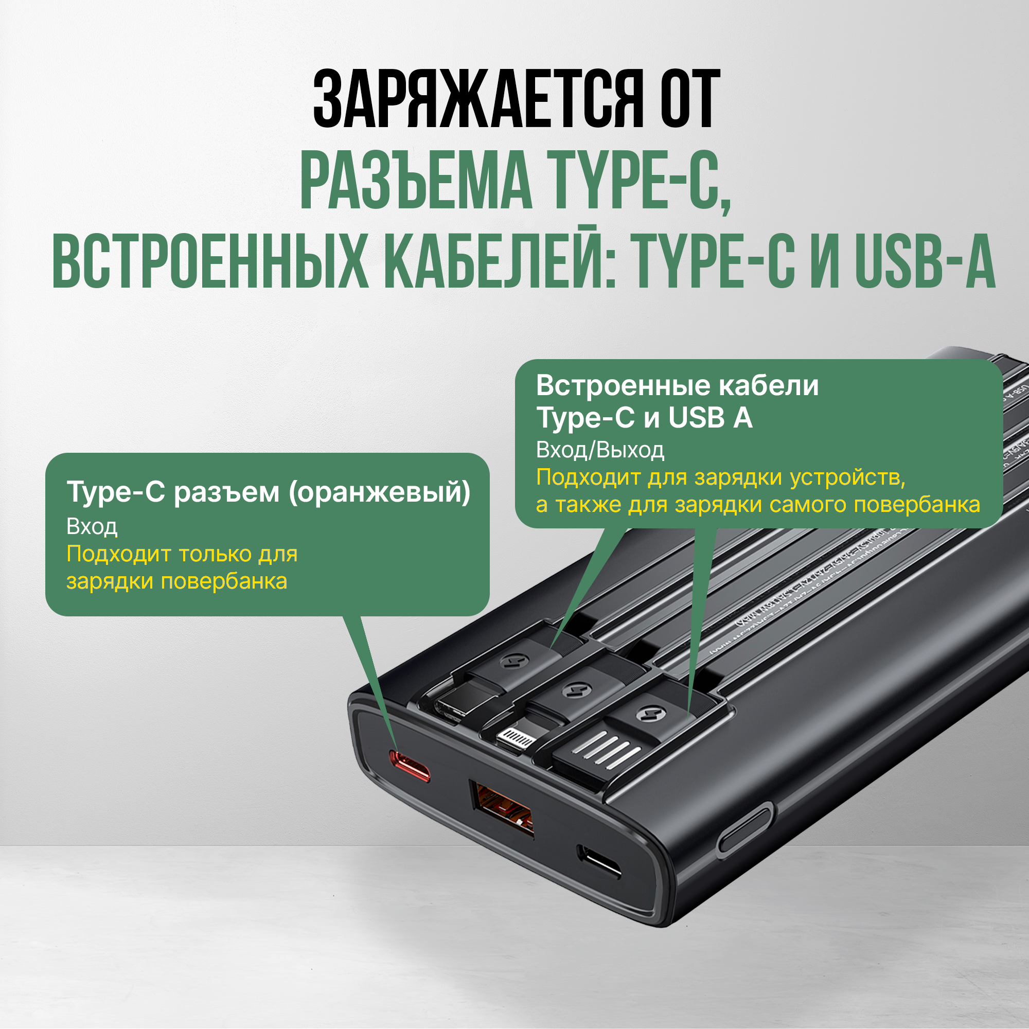 Отзывы на Powerbank WALKER, 20000 mAh, 3 встроенных кабеля, повербанк для айфона, пауэр банк, портативный аккумулятор, черный