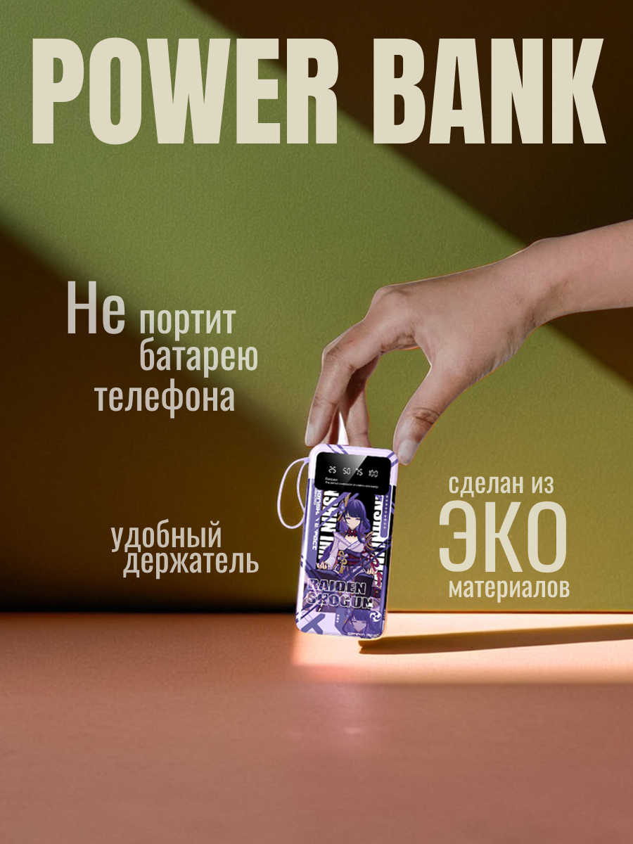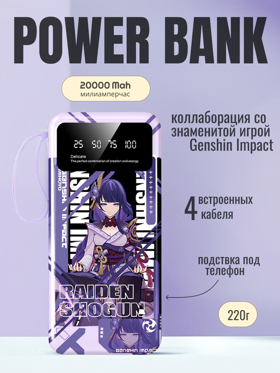 Отзывы на Повербанк 20000 с быстрой зарядкой Genshin Impact "Яэ Мико" / со встроенными кабелями