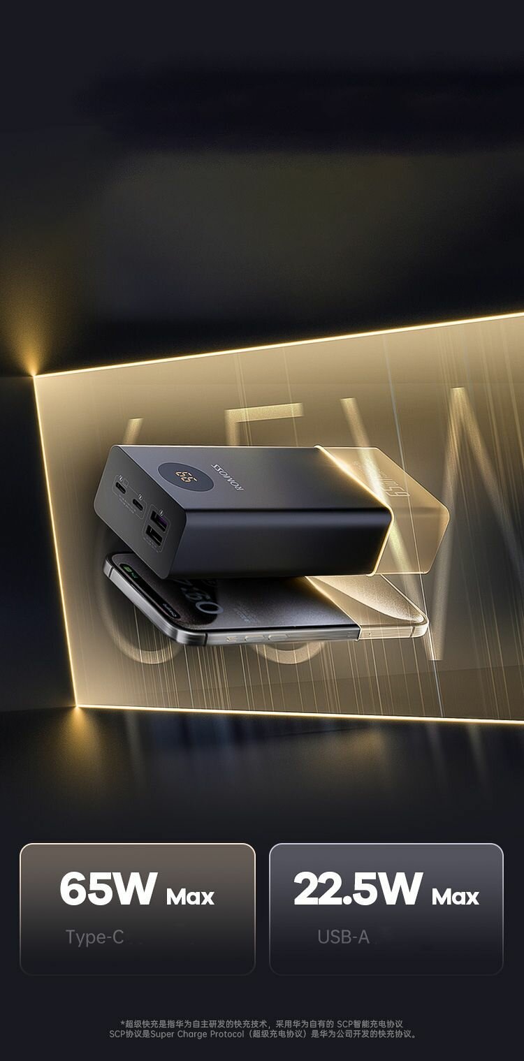 10 цен на Внешний аккумулятор Romos 27000 mAh 65w, Powerbank 27000mAh, черный
