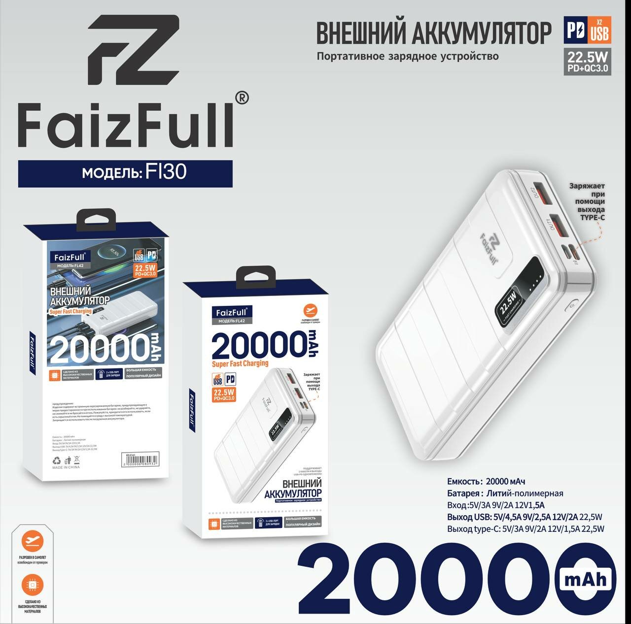 Внешний аккумулятор FaizFull FL42 Powerbank 20000 mAh, белый информация: