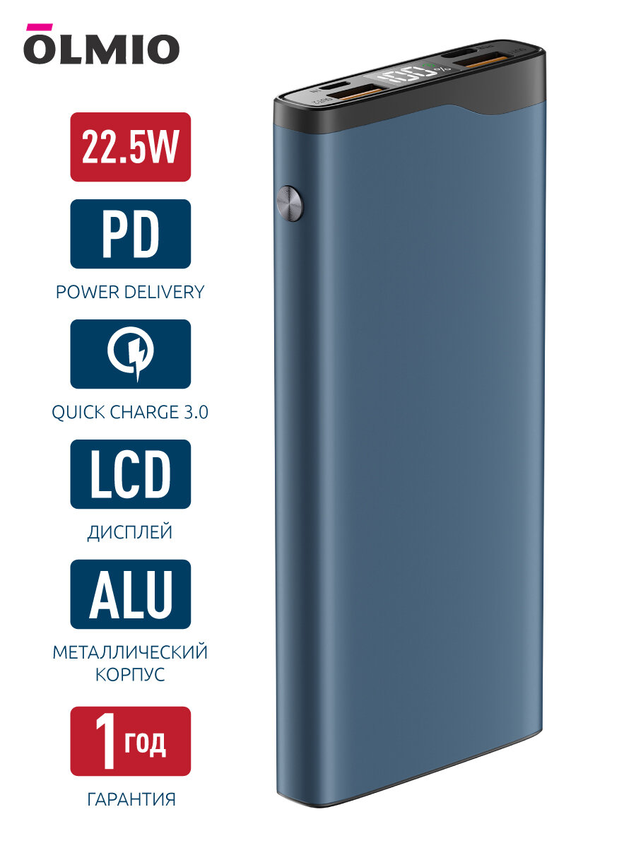 Внешний аккумулятор QL-10, 10000mAh, Olmio, синий информация: