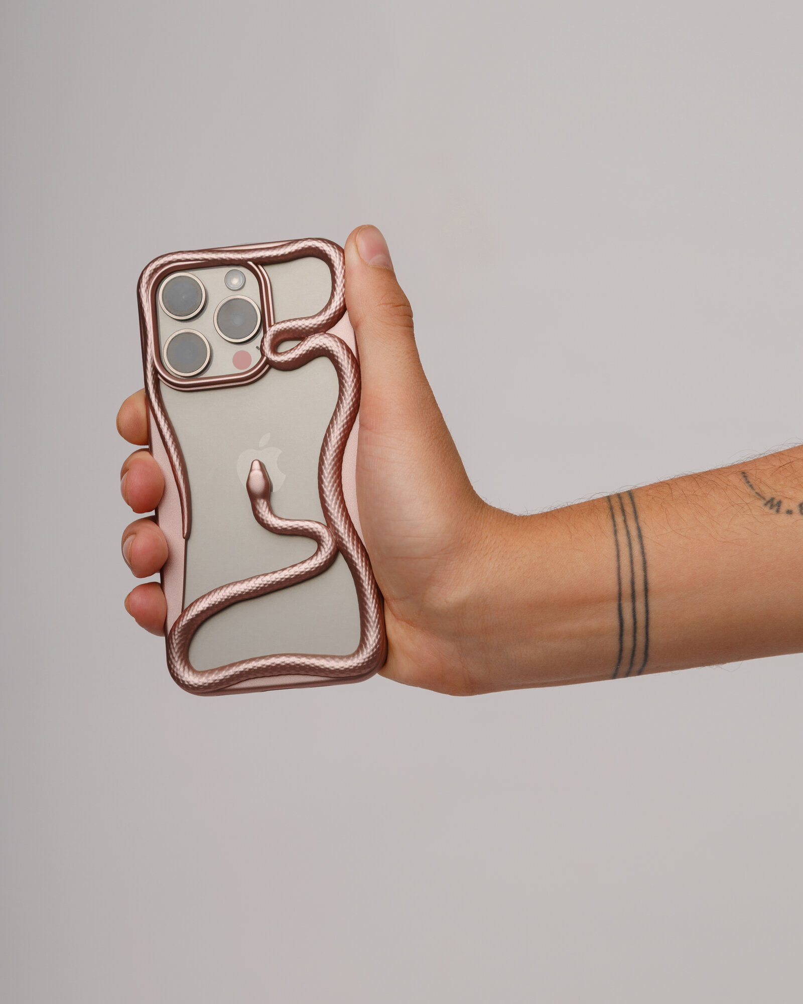 Чехол розового цвета на iPhone 16 Pro с змеиным принтом, пластик информация:
