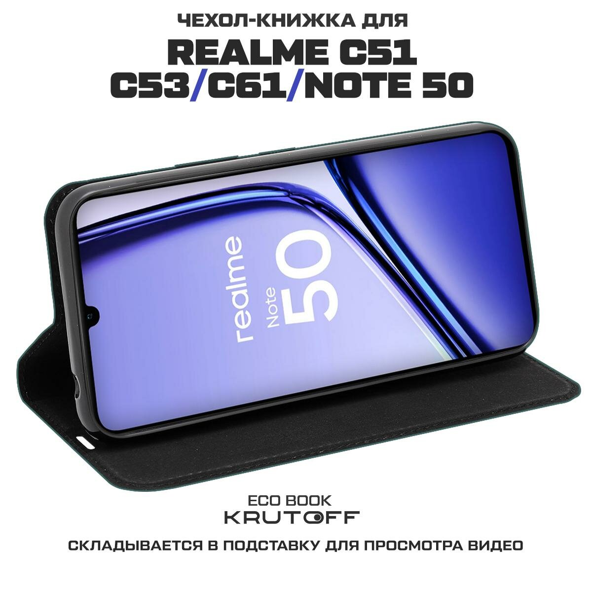 10 цен на Чехол-книжка Krutoff Eco Book для Realme C51/C53/Note 50 зелёный опал
