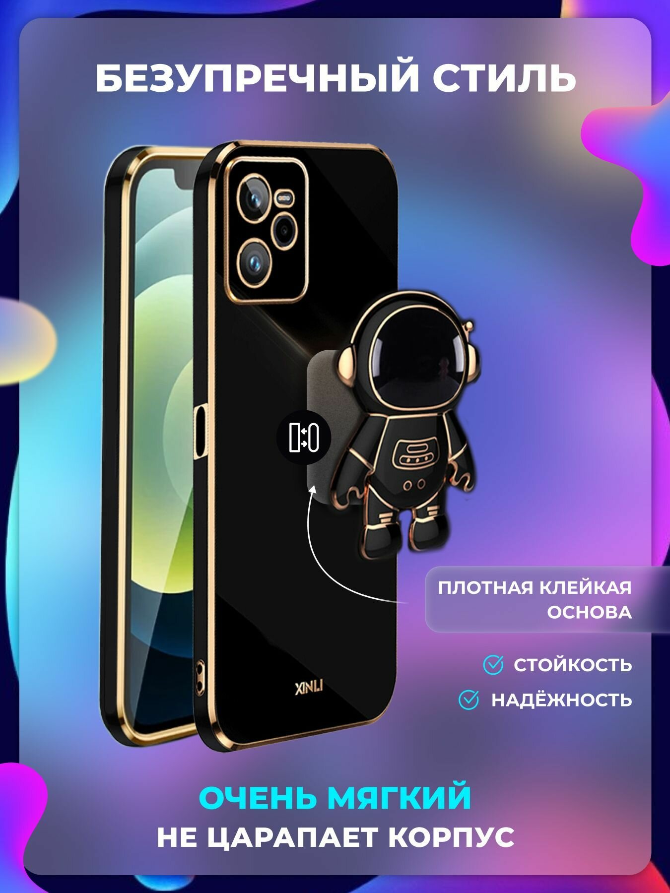 Чехол на Realme C35 защитный бампер с подставкой-попсокетом на Реалми С35 Черный 399 ₽