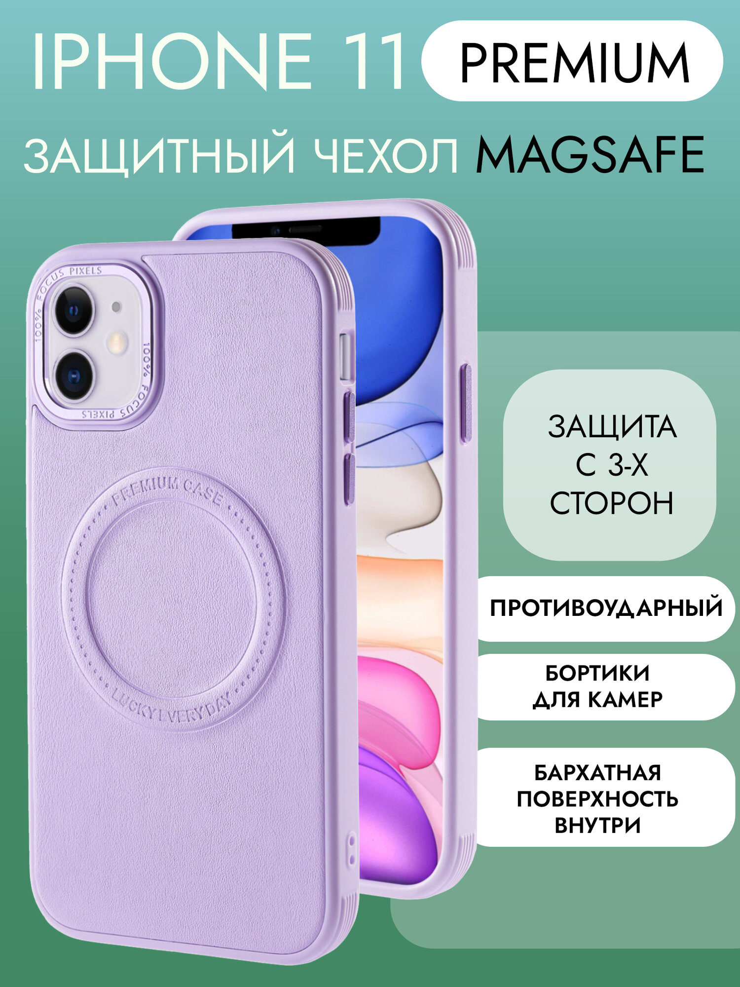 Чехол Magsafe на iPhone 11 противоударный на айфон 11 сиреневый под кожу информация: