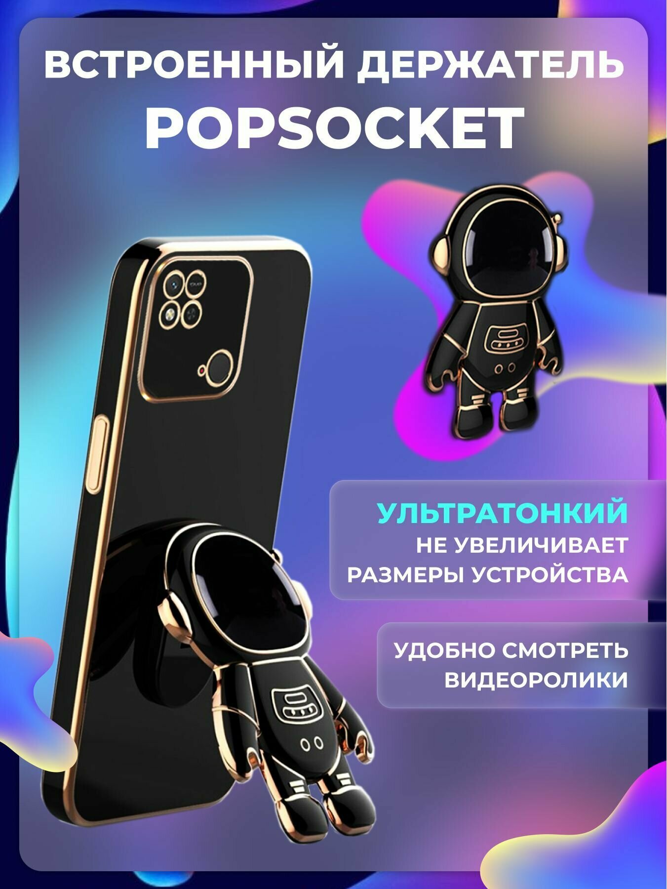 Чехол на Redmi 10C / Poco C40 защитный бампер с подставкой-попсокетом на Редми 10С / Поко С40 Черный 399 ₽