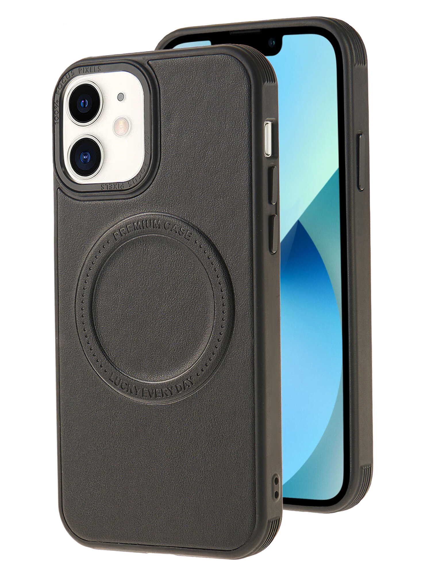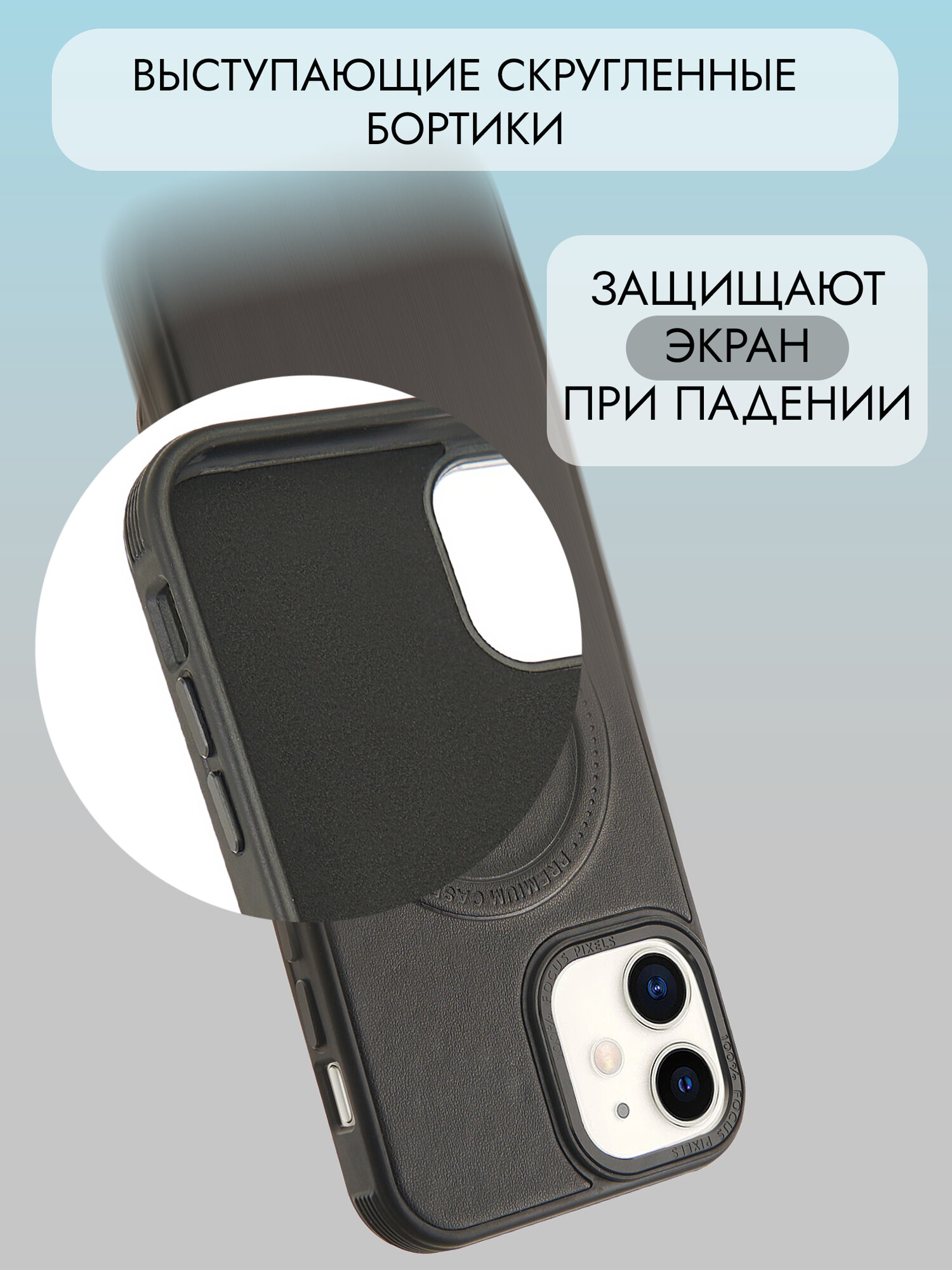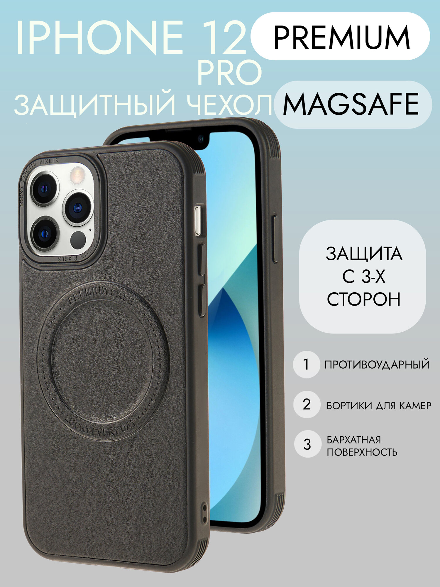 Чехол Magsafe на iPhone 12 и 12 про противоударный на айфон 12 и 12 про черный под кожу информация: