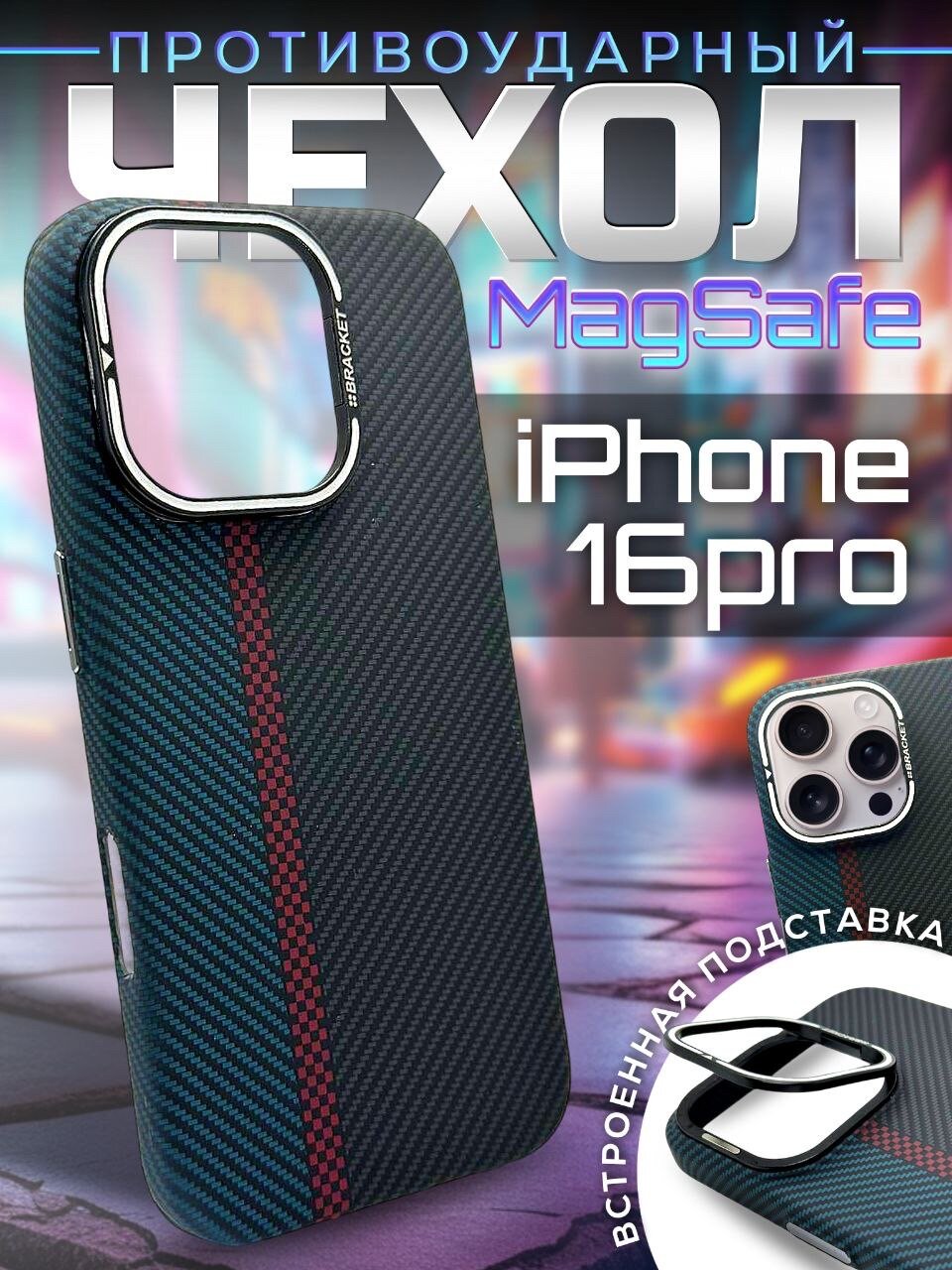 Чехол LUXO "Kevlar", для iPhone 16 Pro, с подставкой, для беспроводной зарядки информация: