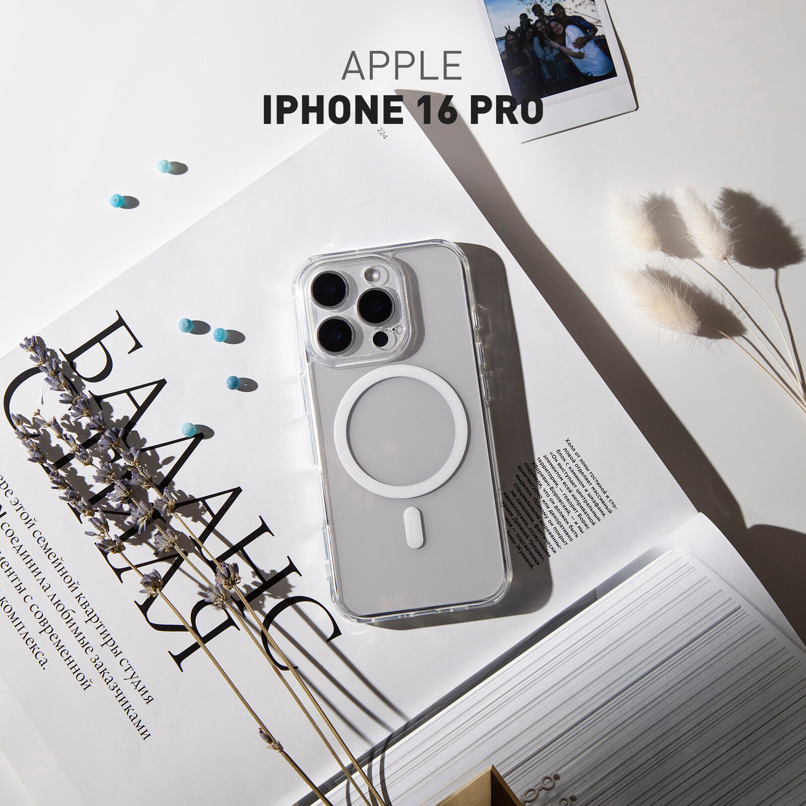 10 цен на Пластиковый чехол с Magsafe на Apple iPhone 16 Pro (Айфон 16 Про), бренд Rosco, прозрачный