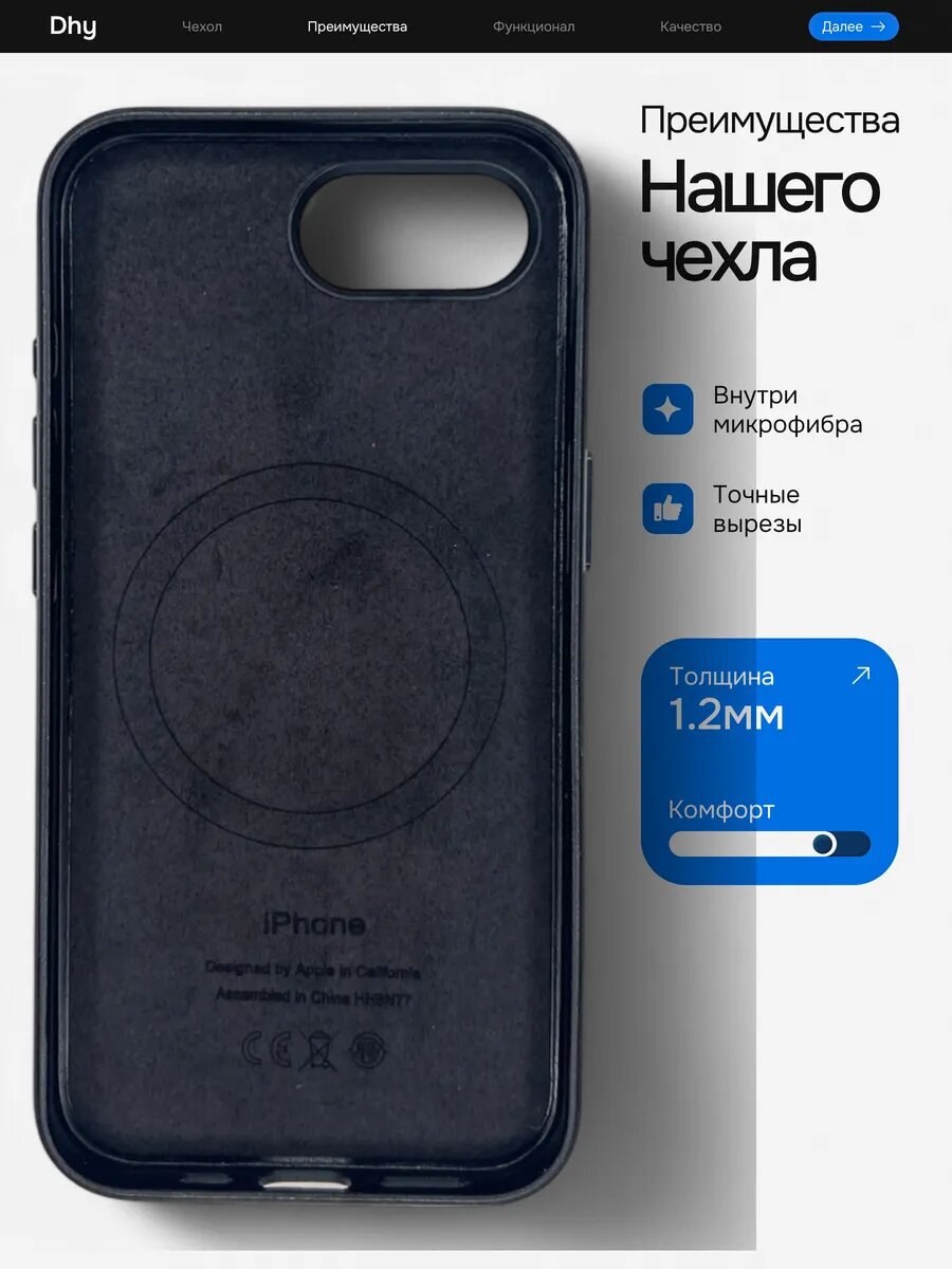 Чехол Dhy Leather Case, для iPhone 16E, с MagSafe, беспроводная зарядка 1 680 ₽