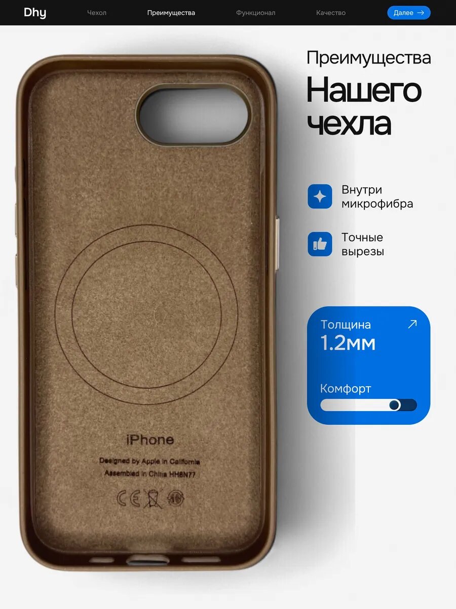 Чехол Dhy Leather Case, для iPhone 16E, с MagSafe, беспроводная зарядка 1 680 ₽