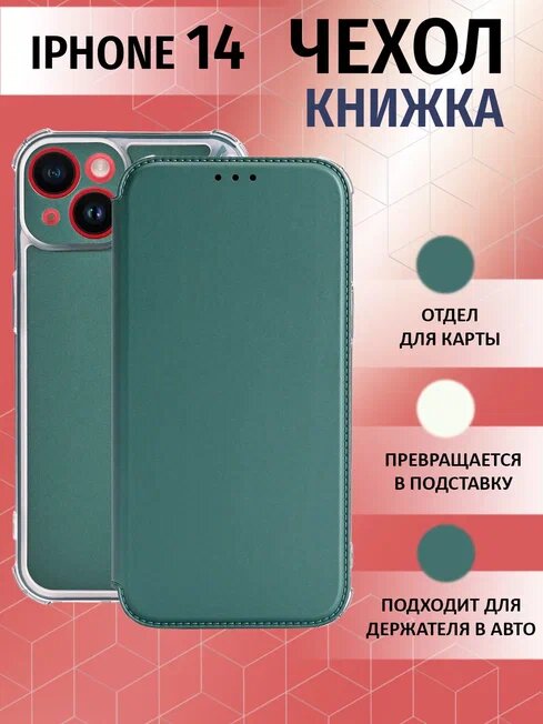 Отзывы на Чехол-книжка на iPhone 14 с противоударным бампером с усиленными углами на айфон 14 Темно-зеленый