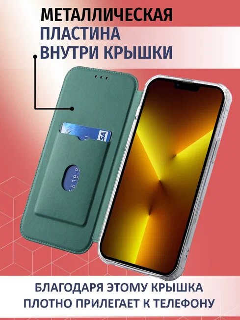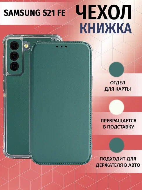 Чехол-книжка на Samsung S21 Fe с противоударным бампером с усилиленными углами для самсунг с21 фе Темно-зеленый информация: