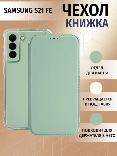 Отзывы на Чехол-книжка на Samsung S21 Fe с противоударным бампером с усилиленными углами для самсунг с21 фе Светло-Зеленый