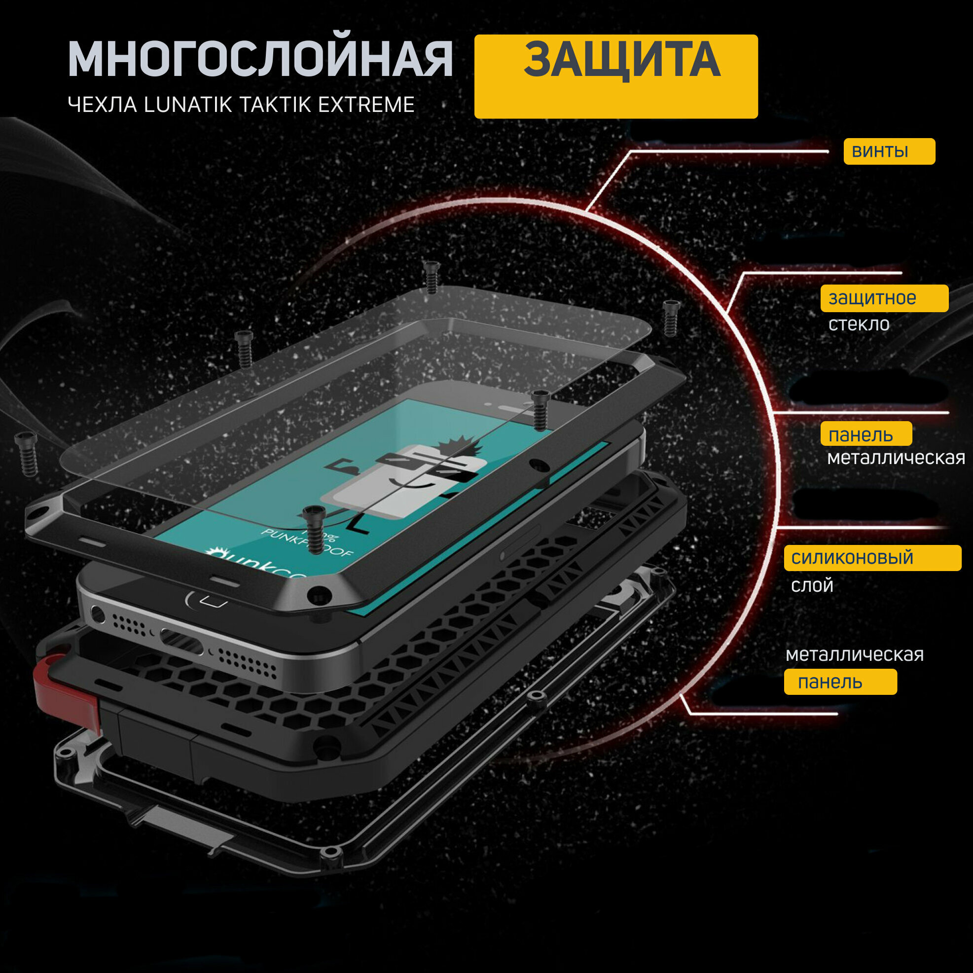 Чехол для iPhone 5, iPhone 5s, iPhone SE LunaTik Taktik Extreme ударопрочный, цвет Black информация: