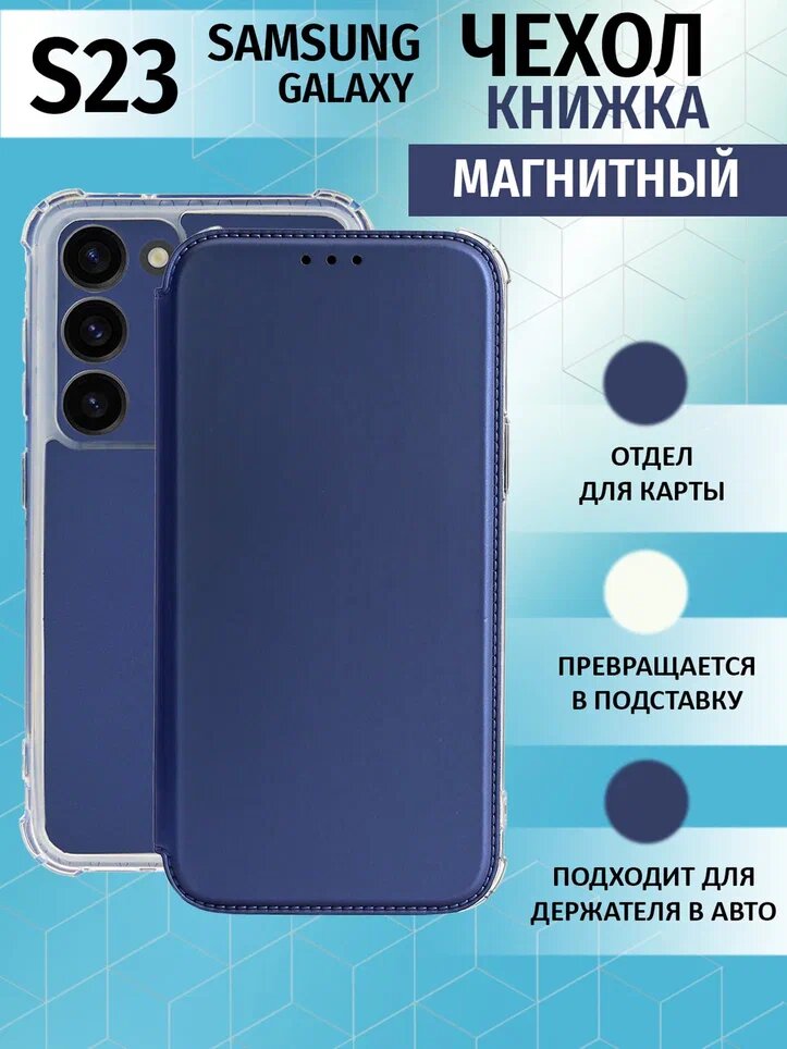 Отзывы на Чехол-книжка на Samsung Galaxy S23 с противоударным бампером с усиленными углами на самсунг с23 Синий