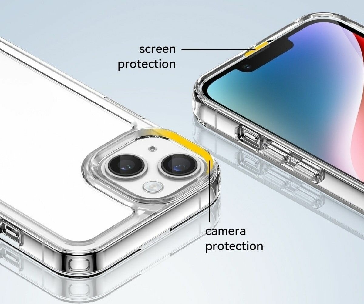 10 цен на Чехол на iPhone 15 пластиковый с силиконовой окантовкой прозрачный