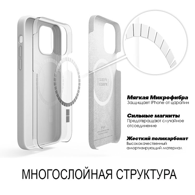 Чехол силиконовый MagSafe для iPhone 15 Clay с анимацией NFC, Silicone case MagSafe для айфон 15 - Титановый 1 378 ₽