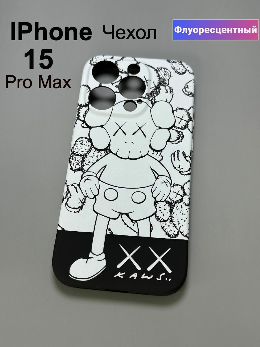 Отзывы на Чехол на iphone 15 Pro Max, защитный кейс Luxo на айфон 15 Про Макс кавс , soft-touch , с флуоресцентным рисунком Kaws