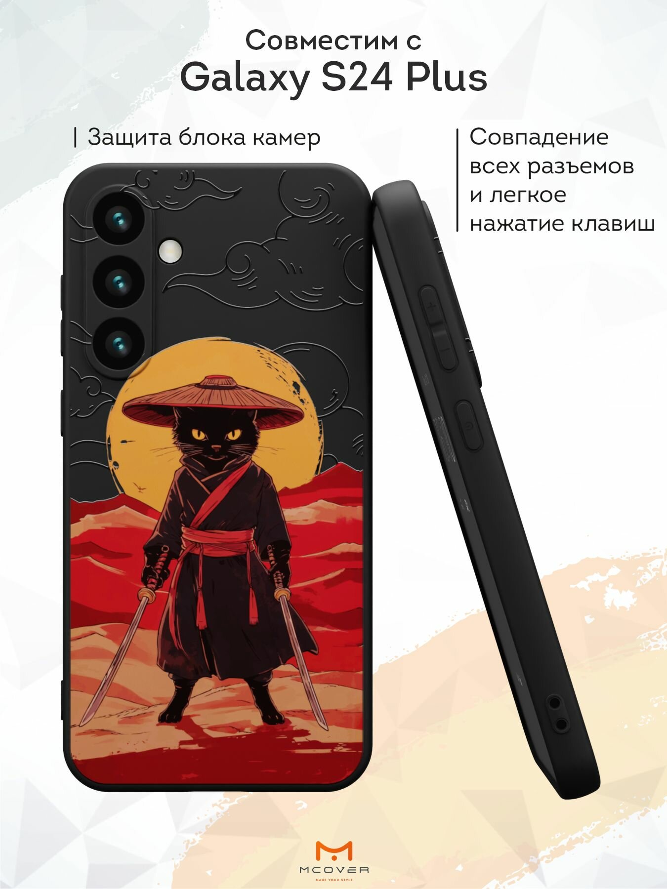 Силиконовый чехол Mcover для Galaxy S24 Plus (Галакси С24 Плюс), Кошачий самурай 530 ₽