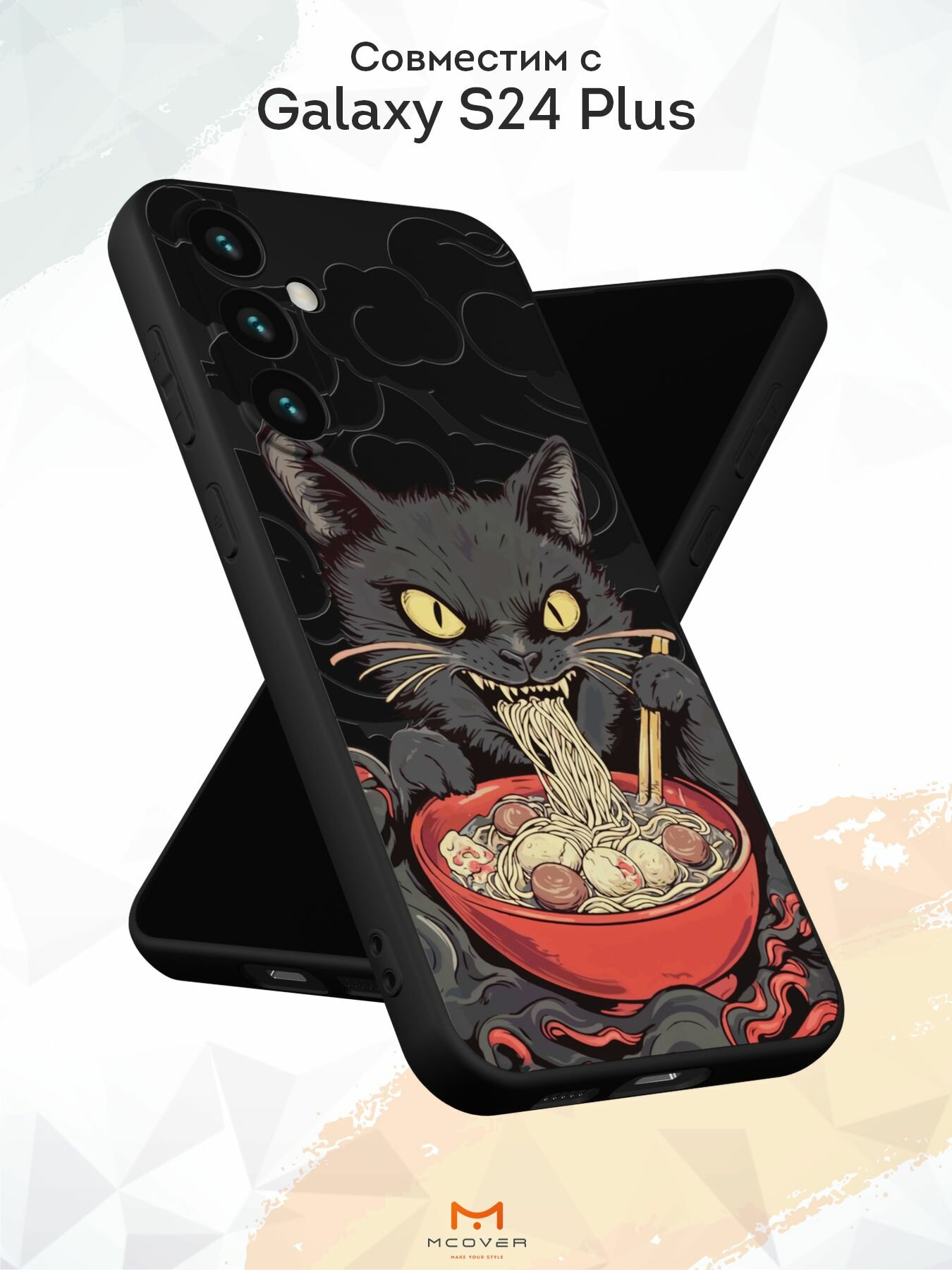 Отзывы на Силиконовый чехол Mcover для Galaxy S24 Plus (Галакси С24 Плюс), Кот ест лапшу
