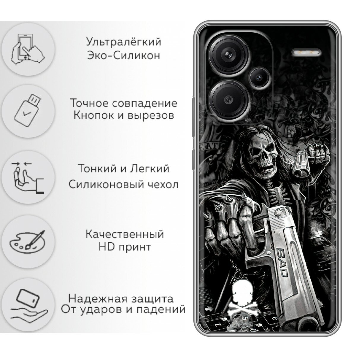 Отзывы на Чехол для Xiaomi Redmi Note 13 Pro Plus 5G с принтом Скелет и череп на Сяоми Редми Нот 13 Про Плюс 5G