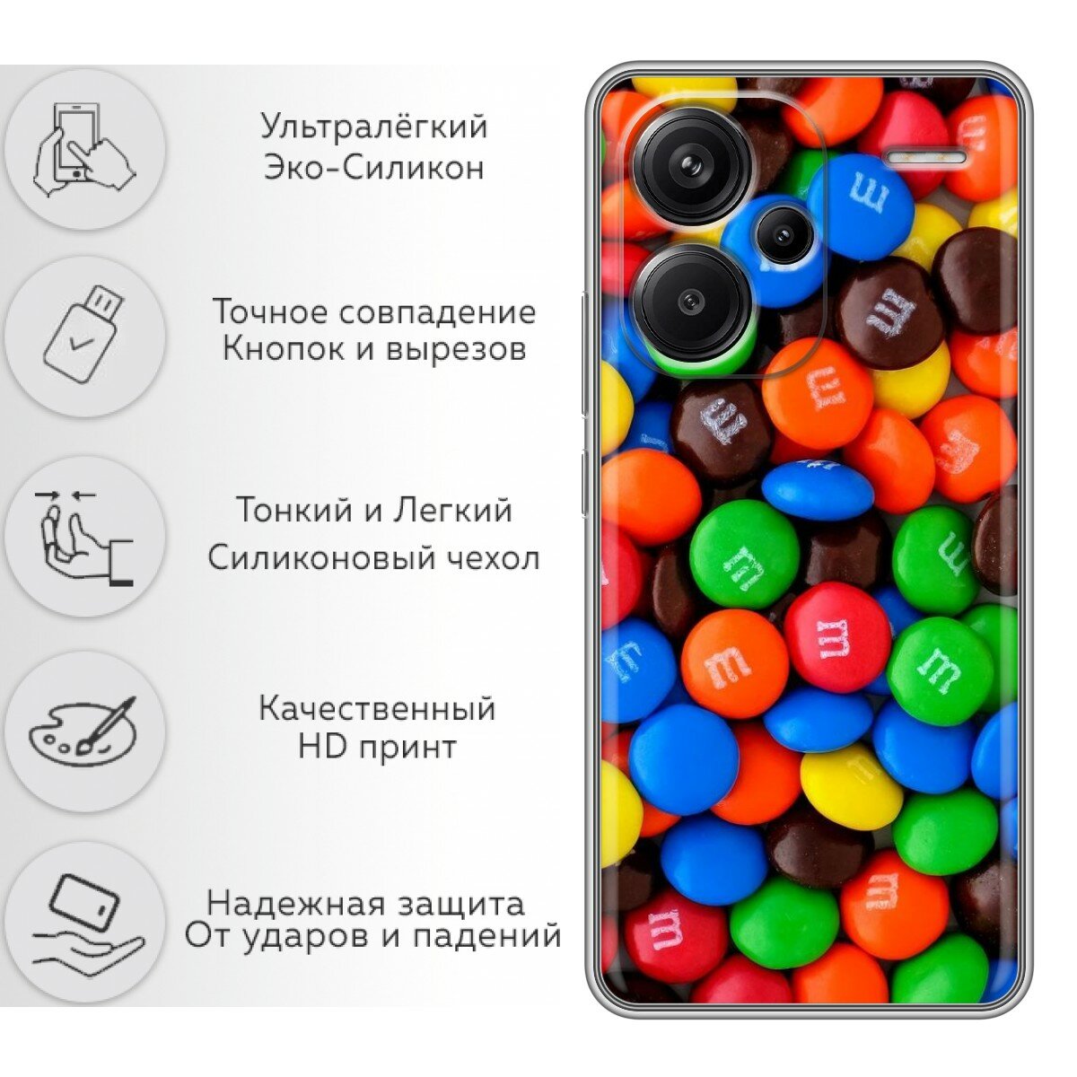 Отзывы на Чехол для Xiaomi Redmi Note 13 Pro Plus 5G с принтом Конфеты на Сяоми Редми Нот 13 Про Плюс 5G