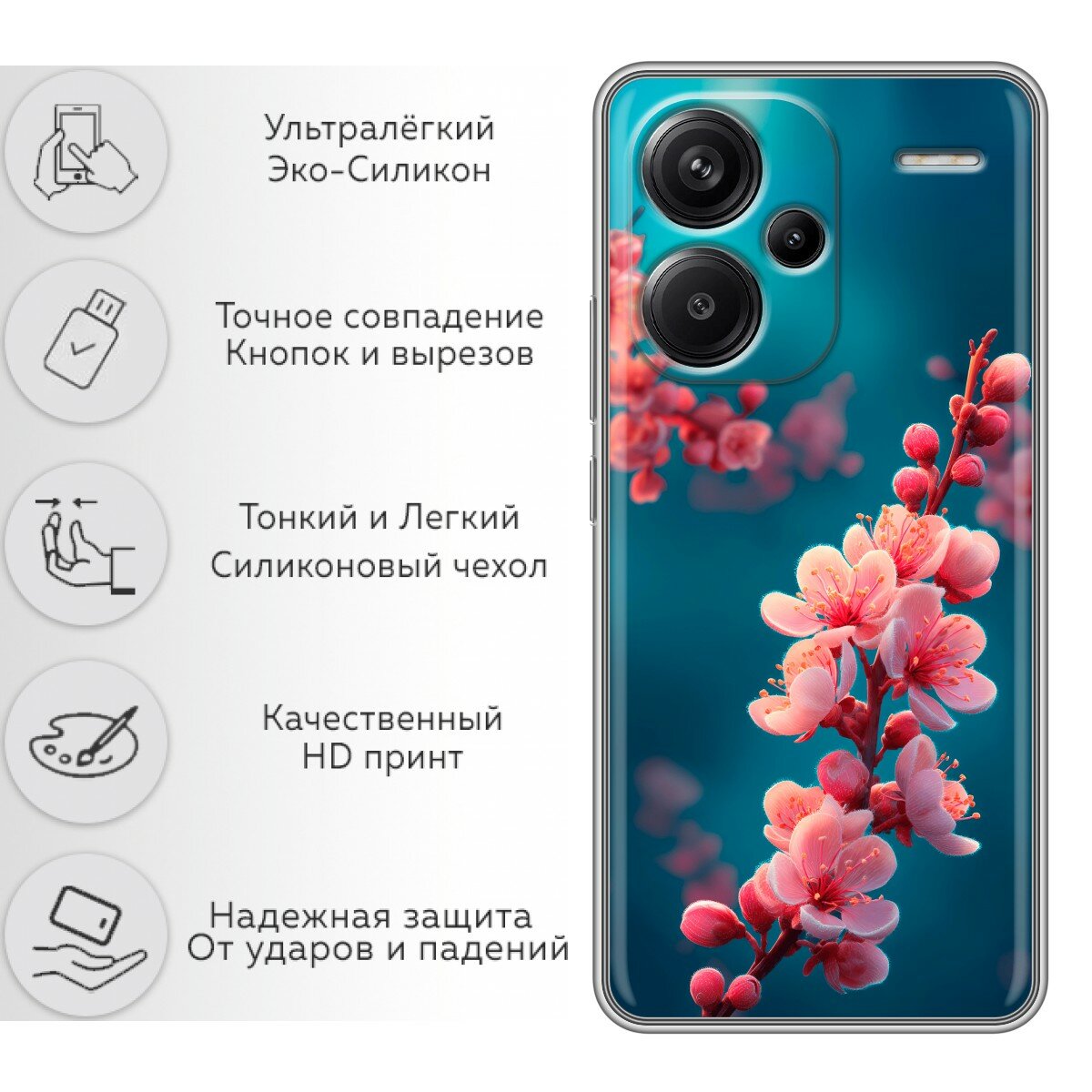 Отзывы на Чехол для Xiaomi Redmi Note 13 Pro Plus 5G с принтом Женский принт цветы на Сяоми Редми Нот 13 Про Плюс 5G