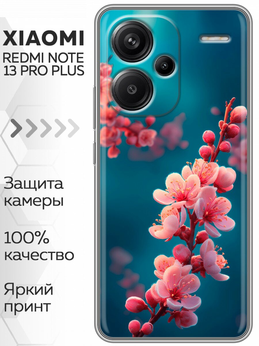 Чехол для Xiaomi Redmi Note 13 Pro Plus 5G с принтом Женский принт цветы на Сяоми Редми Нот 13 Про Плюс 5G информация: