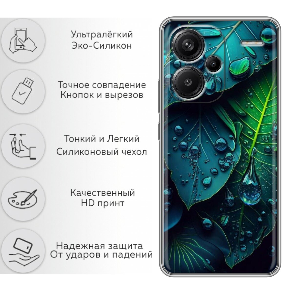 Отзывы на Чехол для Xiaomi Redmi Note 13 Pro Plus 5G с принтом Зеленые листья на Сяоми Редми Нот 13 Про Плюс 5G