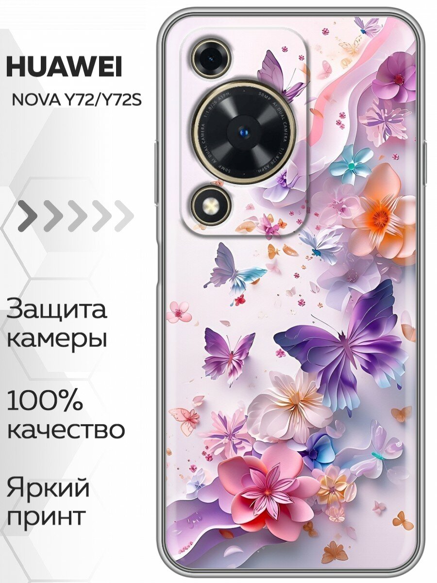 10 цен на Чехол для Huawei Nova Y72, Nova Y72s с принтом Красивые бабочки на Хуавей Нова у72, Нова у72с