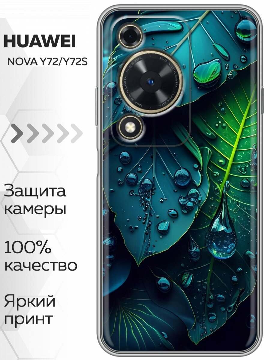 Чехол для Huawei Nova Y72, Nova Y72s с принтом Зеленые листья на Хуавей Нова у72, Нова у72с информация: