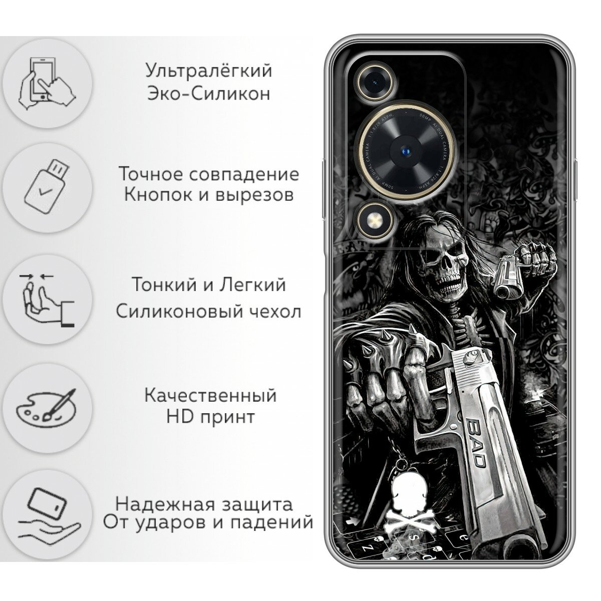 Отзывы на Чехол для Huawei Nova Y72, Nova Y72s с принтом Скелет и череп на Хуавей Нова у72, Нова у72с