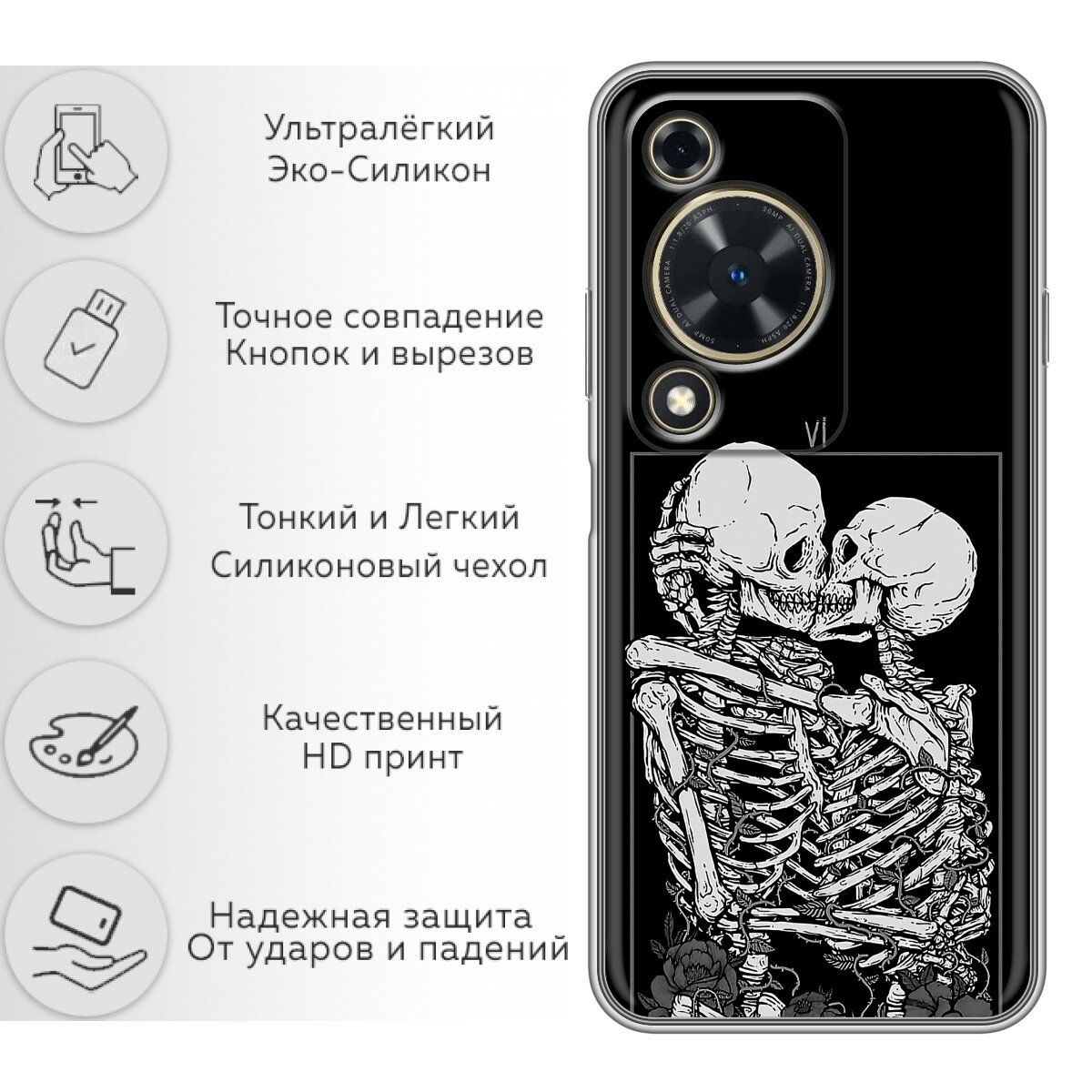 10 цен на Чехол для Huawei Nova Y72, Nova Y72s с принтом Поцелуй скелетов на Хуавей Нова у72, Нова у72с