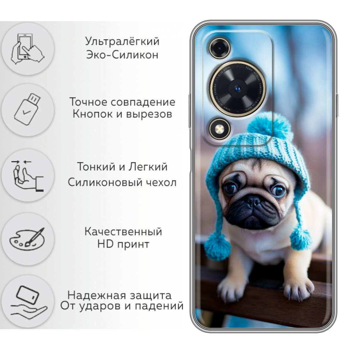 Отзывы на Чехол для Huawei Nova Y72, Nova Y72s с принтом Щенок мопса в шарке на Хуавей Нова у72, Нова у72с