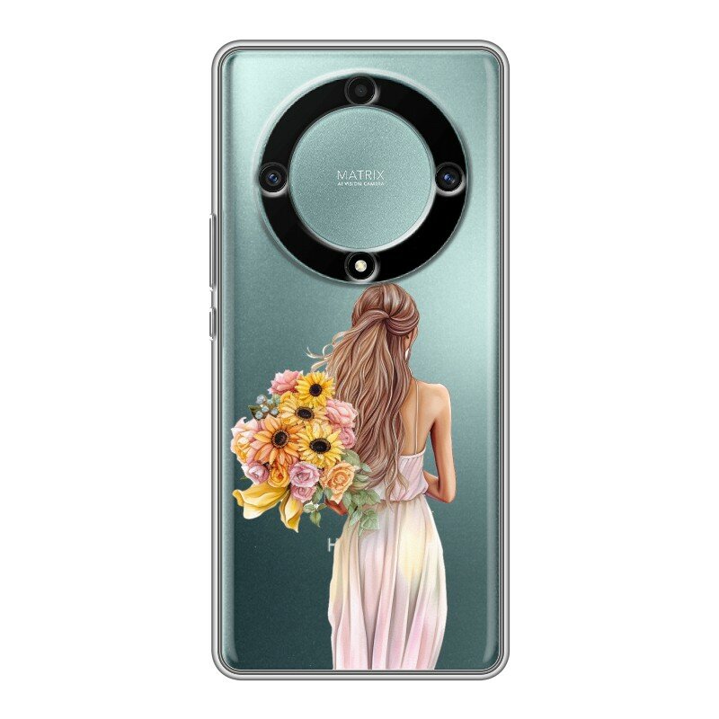Полупрозрачный дизайнерский силиконовый чехол для Хонор Х9а / Huawei Honor X9a Девушка с букетом цветов информация: