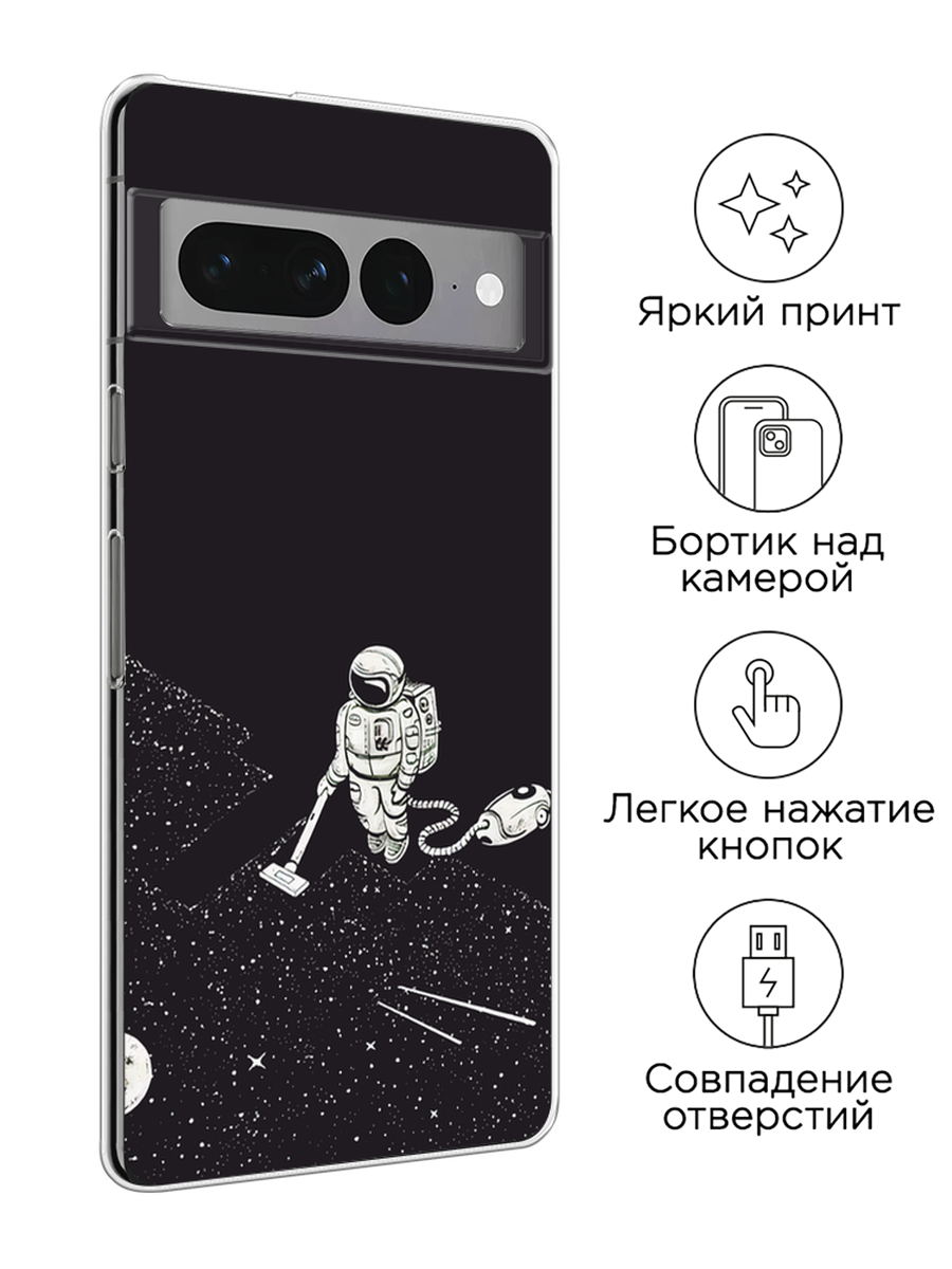 Отзывы на Чехол на Google Pixel 7 Pro / Гугл Пиксель 7 Про с принтом Космонавт с пылесосом