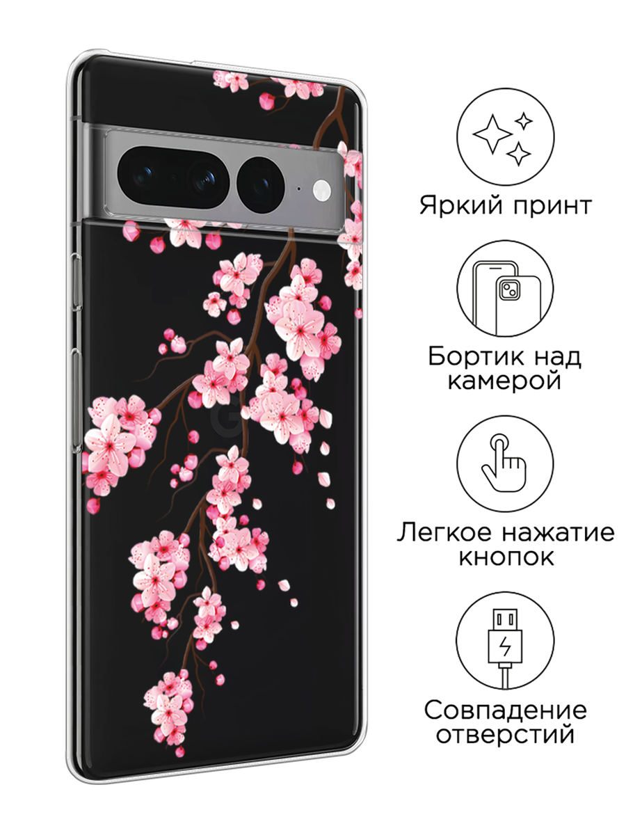 Чехол на Google Pixel 7 Pro / Гугл Пиксель 7 Про с принтом Розовая сакура, прозрачный информация:
