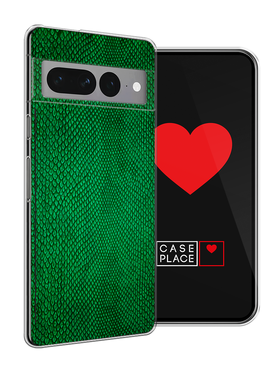 Чехол на Google Pixel 7 Pro / Гугл Пиксель 7 Про с принтом Зеленая кожа змеи 609 ₽