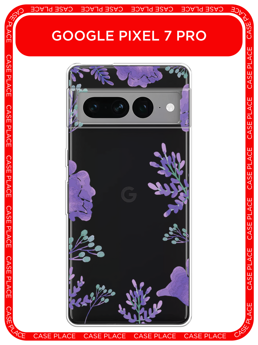 10 цен на Чехол на Google Pixel 7 Pro / Гугл Пиксель 7 Про с принтом Сиреневая цветочная рамка, прозрачный