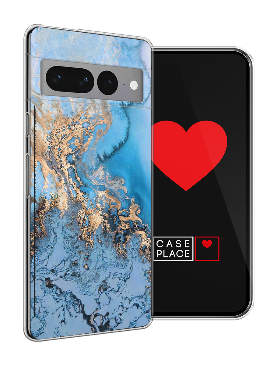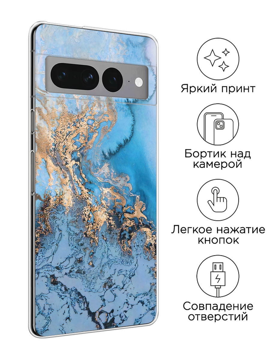 Чехол на Google Pixel 7 Pro / Гугл Пиксель 7 Про с принтом Голубой мрамор рисунок 609 ₽