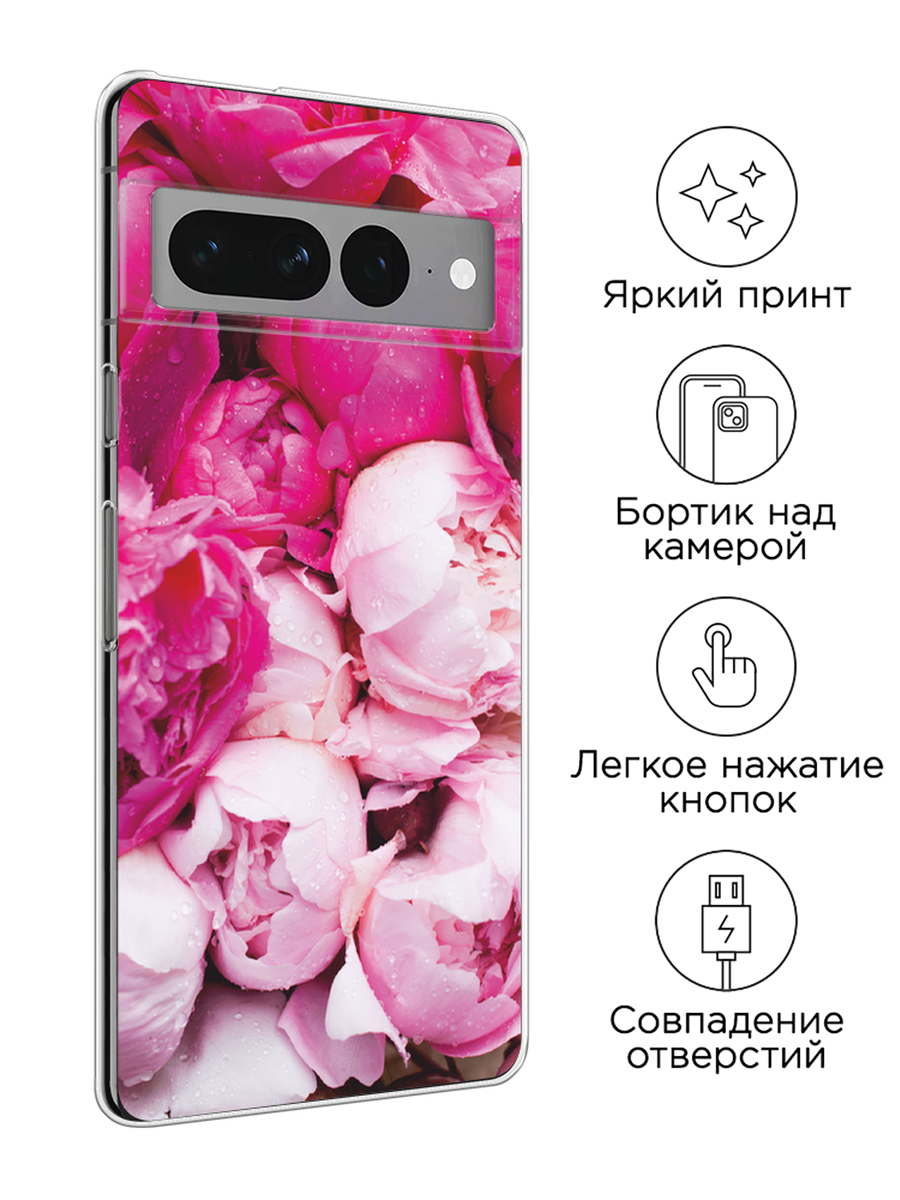 10 цен на Чехол на Google Pixel 7 Pro / Гугл Пиксель 7 Про с принтом Пионы розово-белые